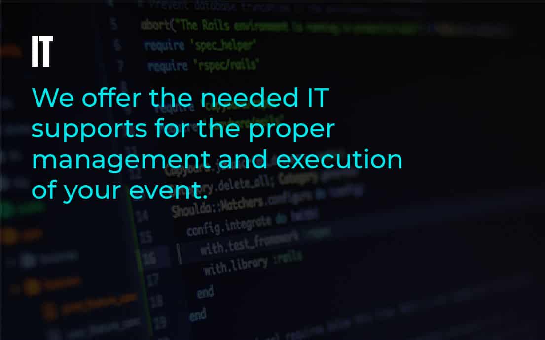 Our experience of more than 30 years in the production events’ world has led us to integrate 360º solutions, being able to offer global services at any stage of the project. In such manner, we can work in close collaboration with the client to plan and completely cover the needs that can arise.
